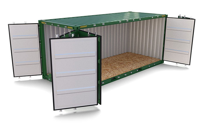 A 20-foot cargo container "Side door (Open side)" with an additionally open sidewall is designed for easier and faster loading of bulk and bulky goods into the container. 20ft OS combines the reliability and high protective properties of a standard 20DC with the convenience of loading a platform or flat rack. The container can be loaded and unloaded without removing it from the car or railway platform.