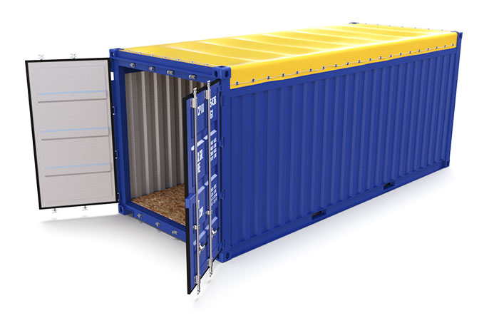 The height of two 20-foot open top half containers is equal to the height of a 20-foot standard container.